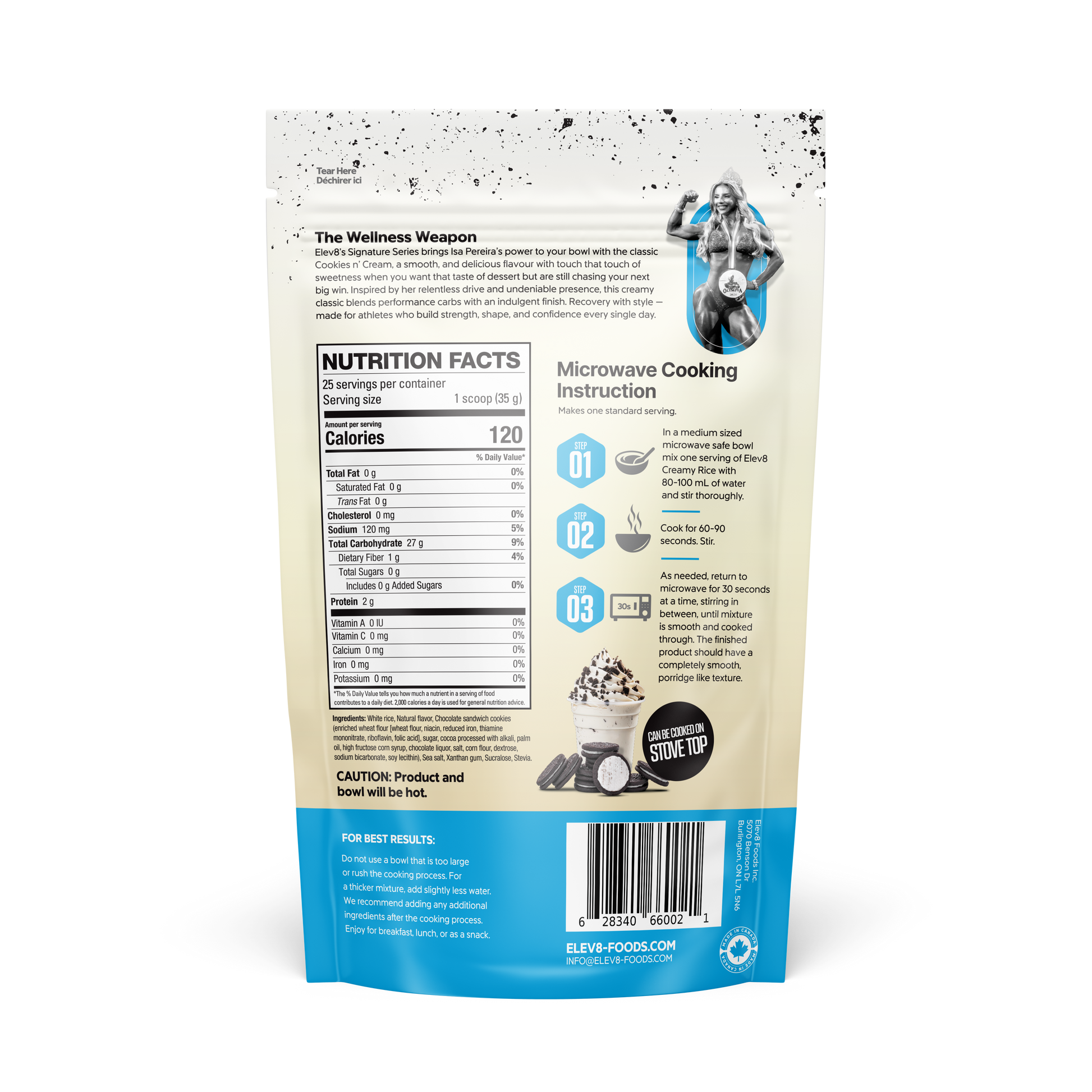 Strengthen your bowl. Elev8 brings Isa Pereira’s signature power to your bowl with the classic Cookies n’ Cream. Smooth, delicious and nourishing, it’s the fuel your body deserves. With every spoonful, you’re not only satisfying your hunger but also embracing strength, shape, and confidence. Elev8 your nutrition and elevate your life